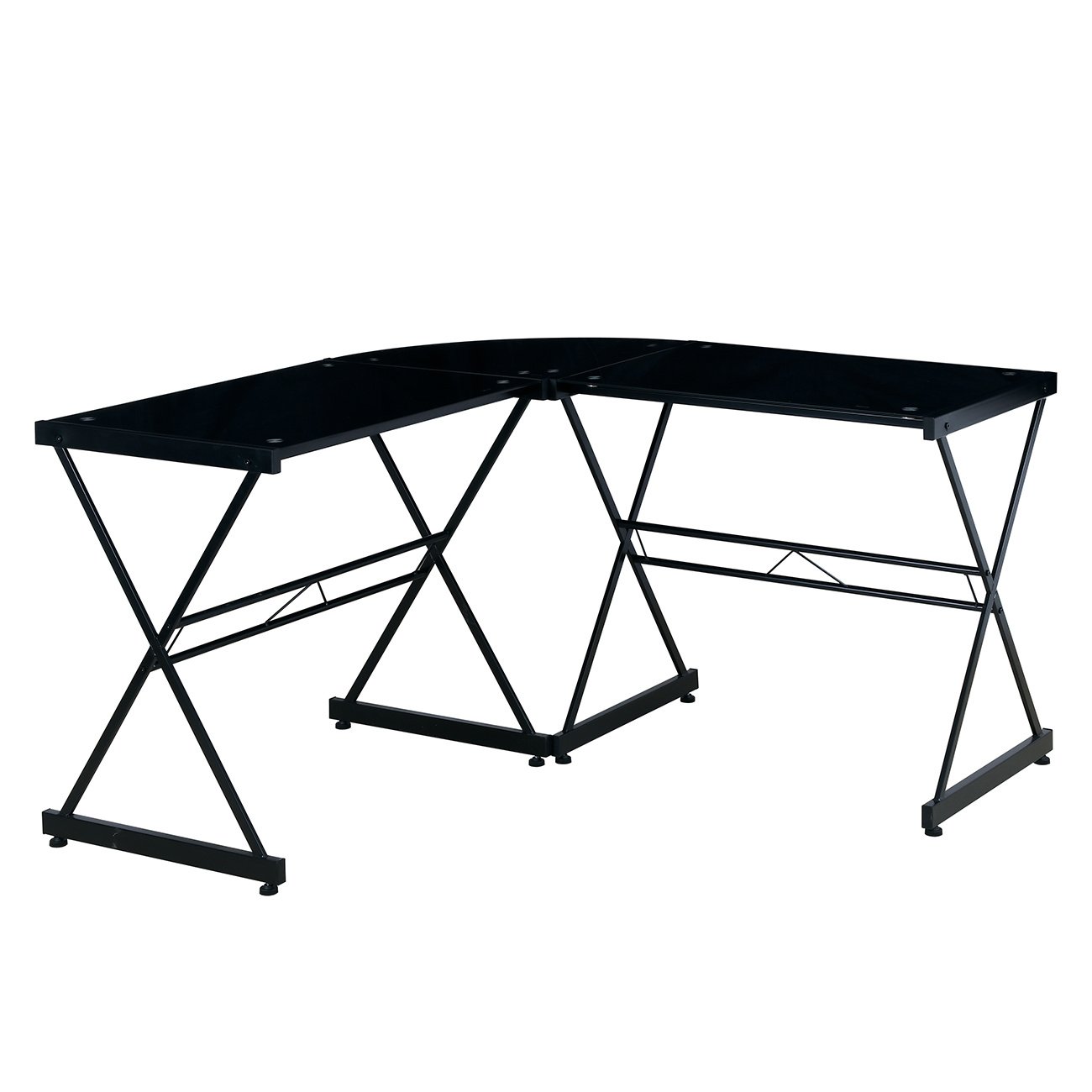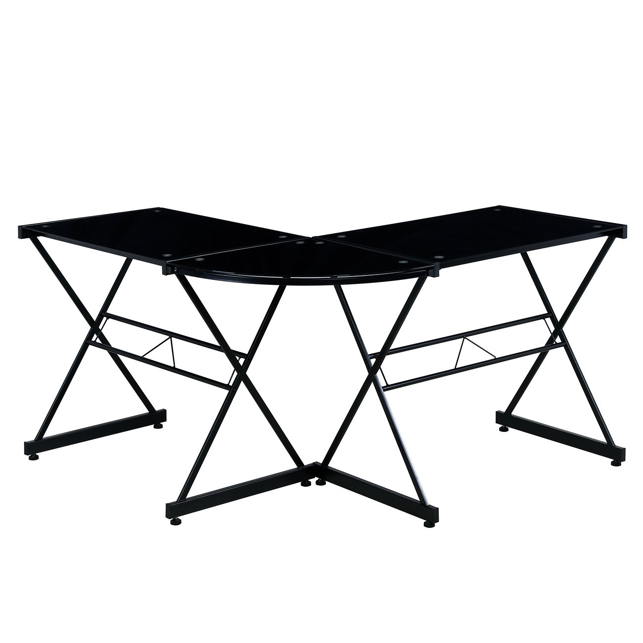 Techni Mobili L-Shaped Glass Computer Desk, BlackIf you are in need of a larger workspace in your office or home, check out the Techni Mobili L-shaped Black Glass Computer Desk. This is an ideal solution for those who are stuck in cramped quarters and do not have any room to work on tasks through the day. It has black tempered glass top and a cross frame design that provides a modern appeal with a black powder-coated frame and floor glides. The design of this black L-shaped glass desk is sure to complement a variety of decors. Color: Black